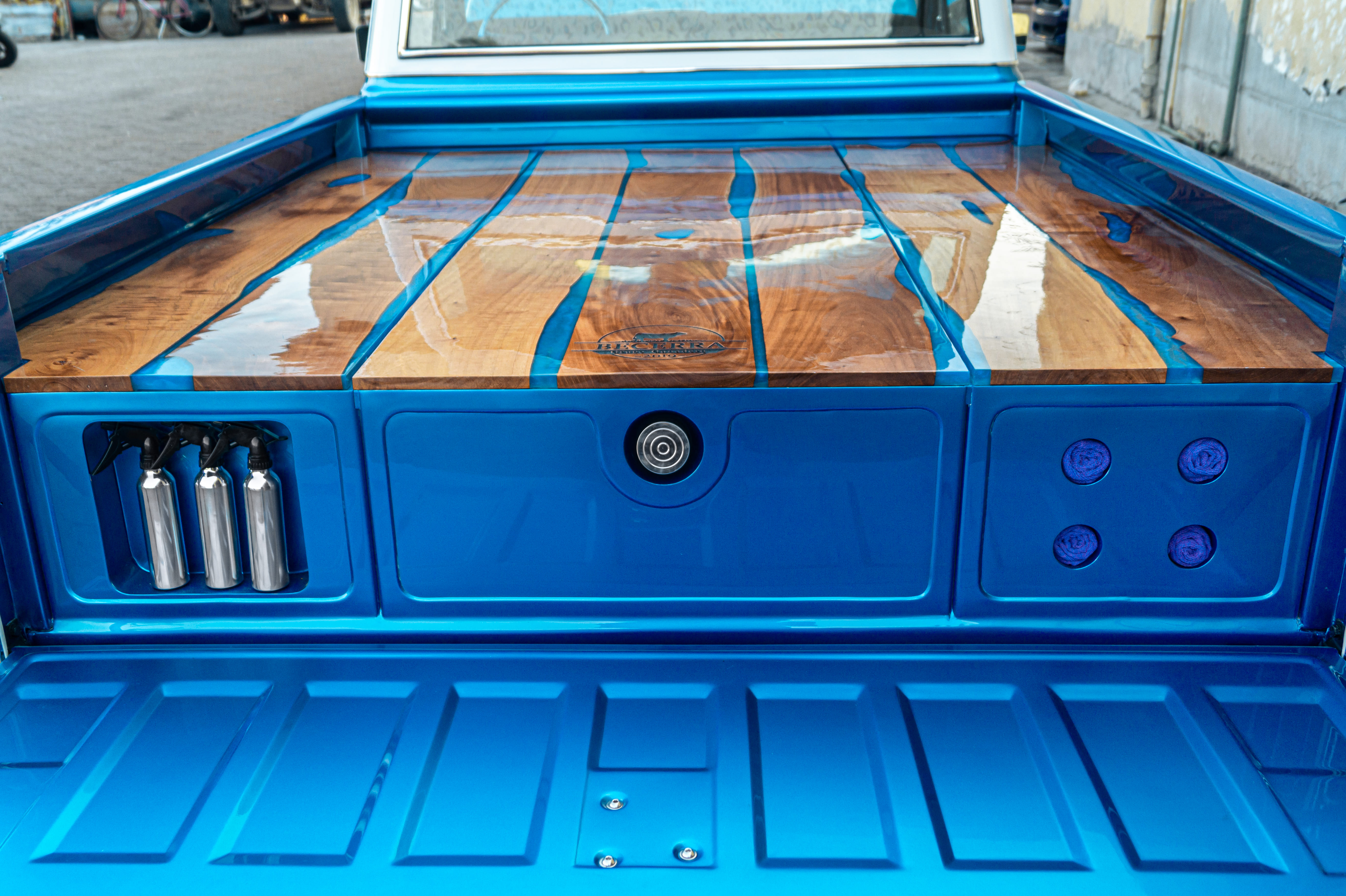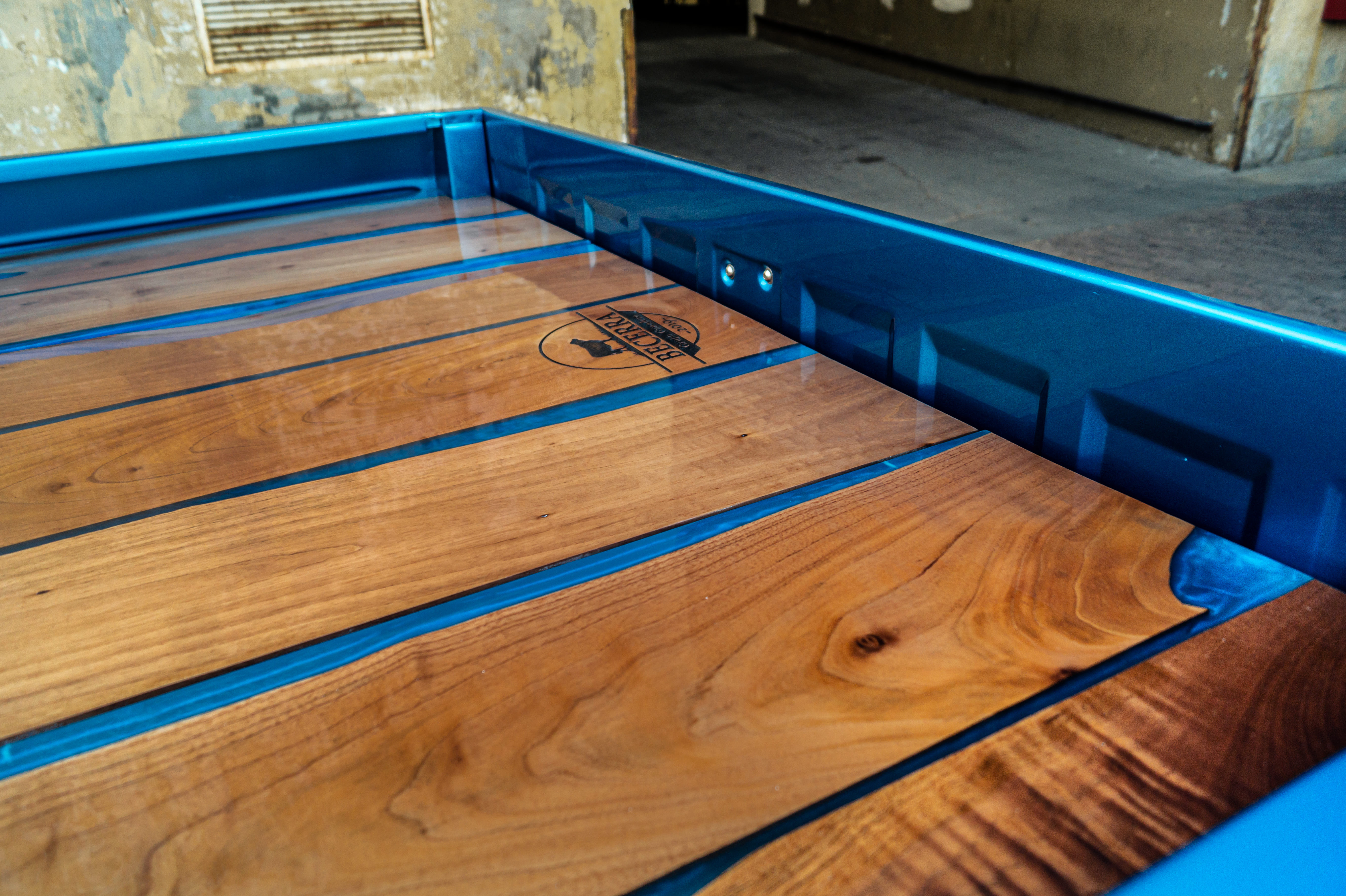 Piso de cajon en madera y recina epoxica.